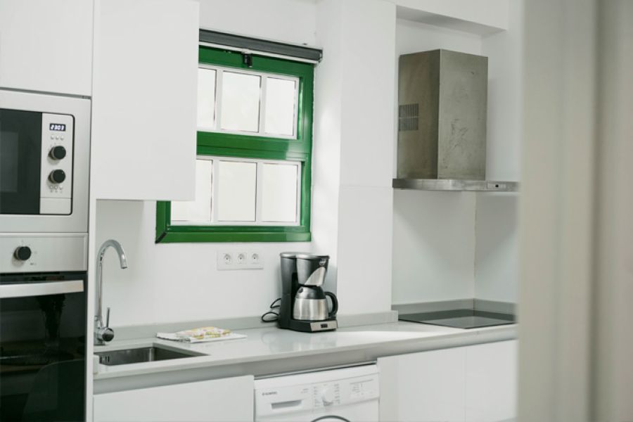 - El apartamento incluye balcón o terraza y zona de estar con sofá y TV. La cocina tiene fogones y nevera. El baño incluye ducha.
