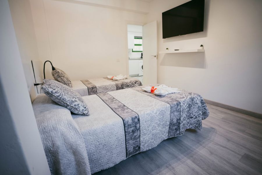 - El apartamento incluye balcón o terraza y zona de estar con sofá y TV. La cocina tiene fogones y nevera. El baño incluye ducha.